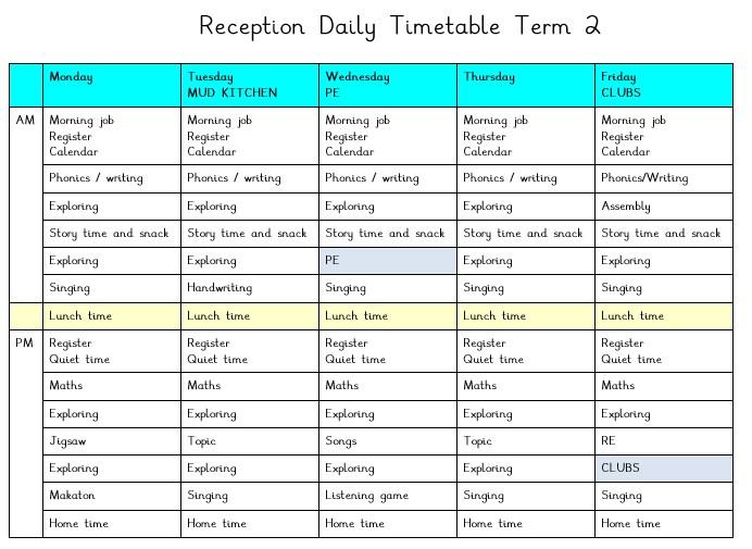 A typical day in Reception will look as follows: